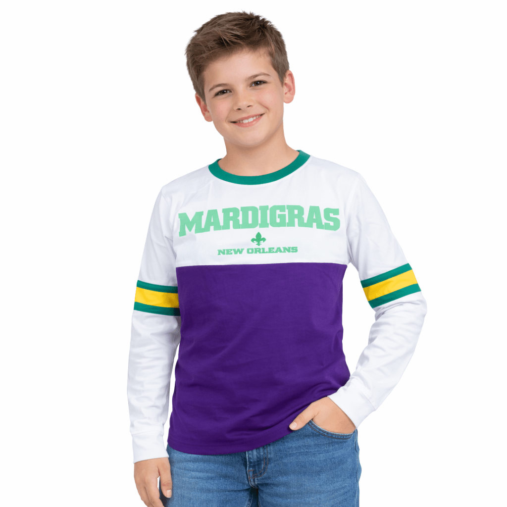 Camiseta raglán con paneles de manga larga unisex Mardi Gras para jóvenes