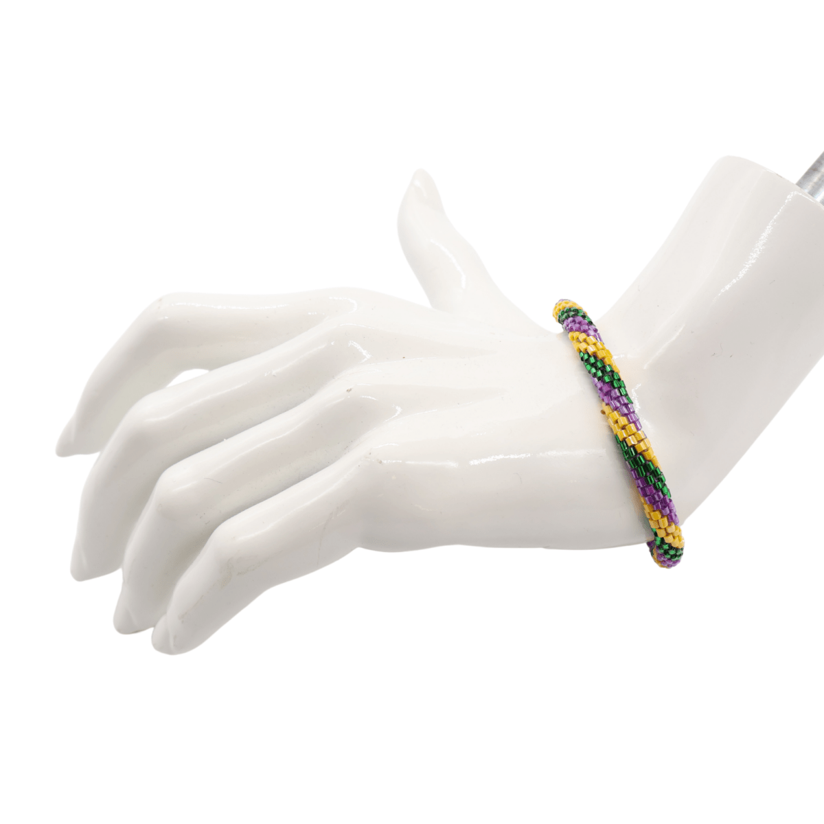 Pair this bracelet with Mardi Gras necklaces, festive attire, or other beaded accessories for a bold and fun carnival look!