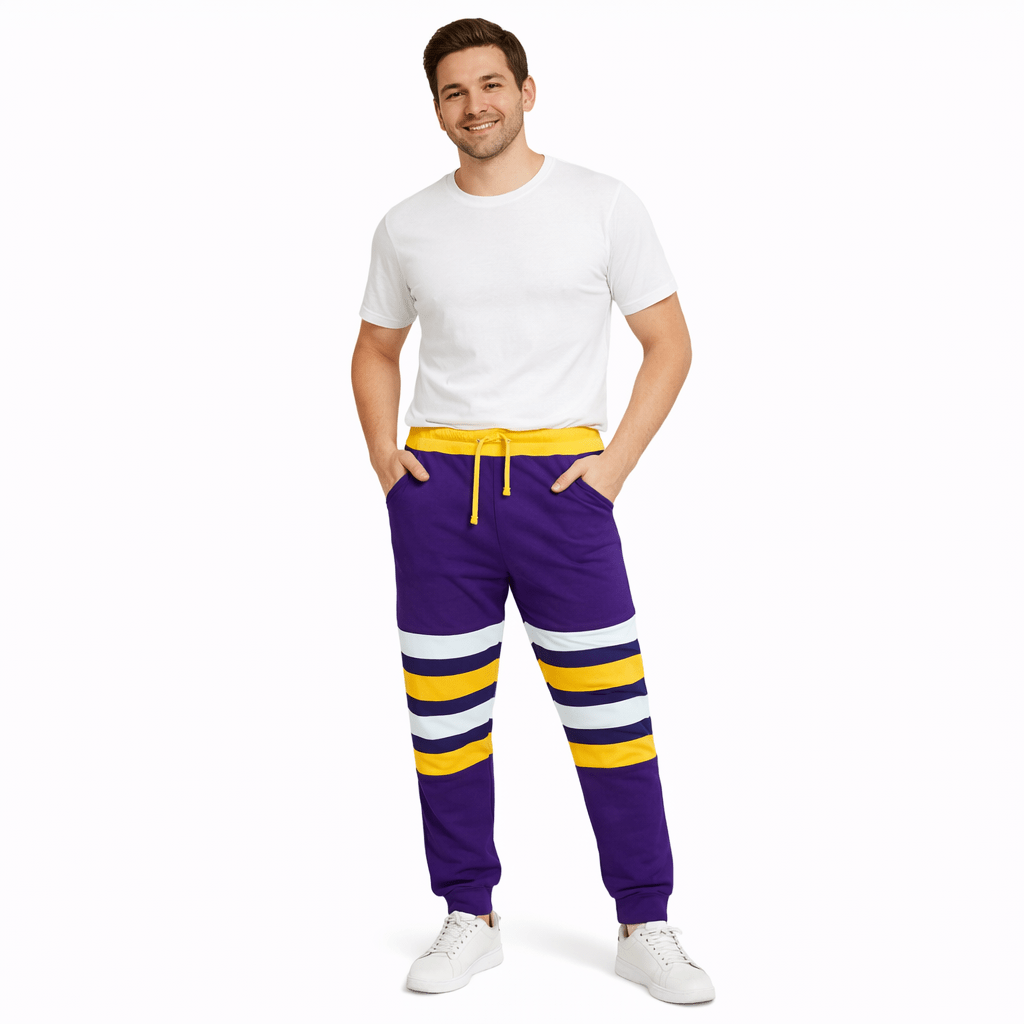 Mardi Gras Purple Jogger pants With Regal Stripes