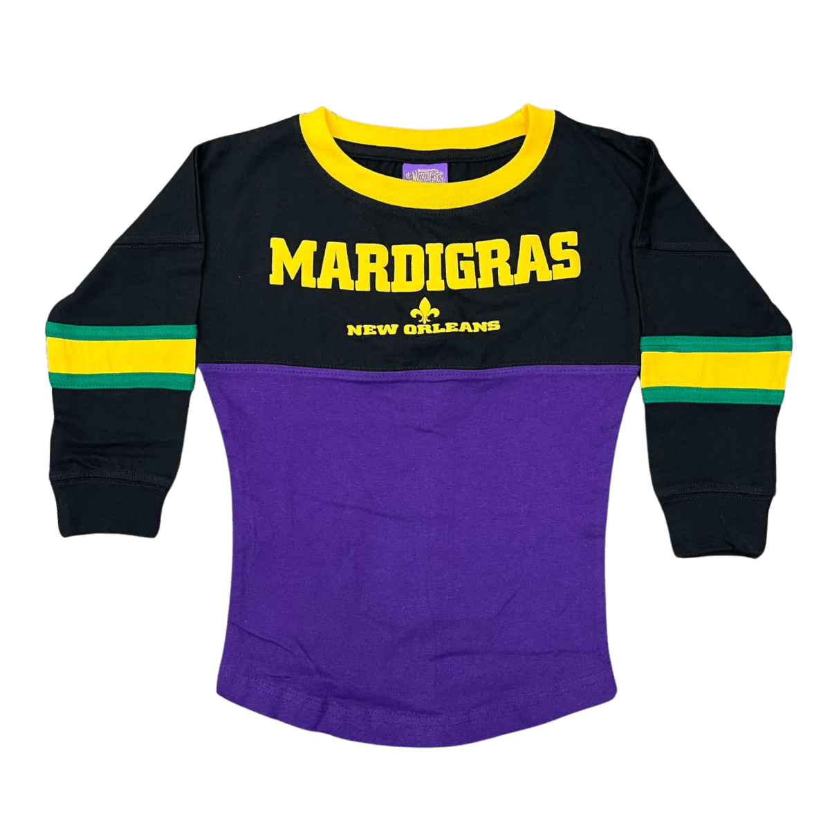 Youth Unisex Mardi Gras Color-Block Long Sleeve Raglan Tee