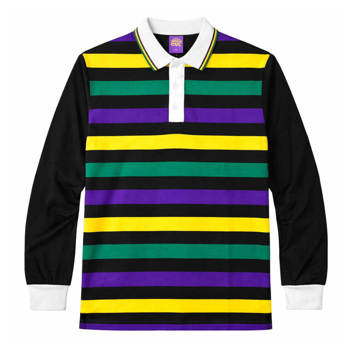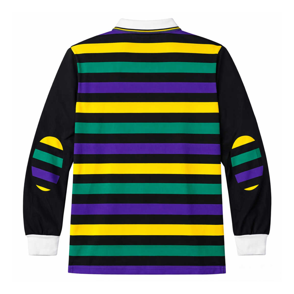 Adult Unisex Mardi Gras Black Long Sleeve Striped Rugby Polo