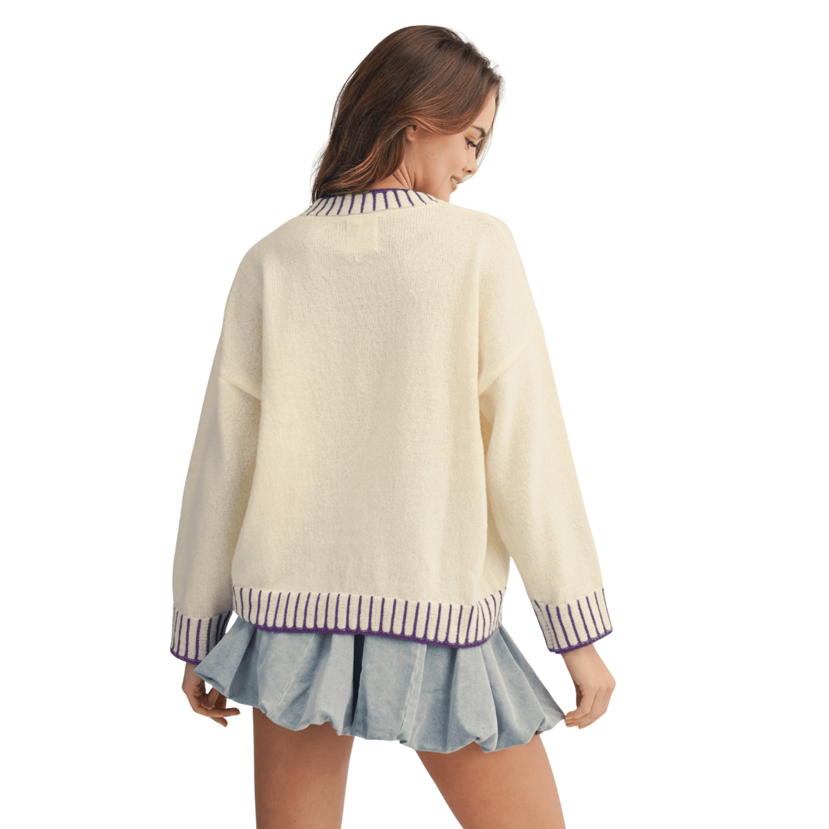 Crafted from a cozy, high-quality knit, this Mardi Gras sweater offers both warmth and breathability, making it perfect for parade routes, festival gatherings, and casual seasonal wear. The relaxed silhouette and ribbed trim provide a flattering, comfortable fit that pairs effortlessly with skirts, jeans, leggings, or boots. Thoughtful details like the ribbed neckline and cuffs add a polished finish while maintaining an easygoing, wearable feel.