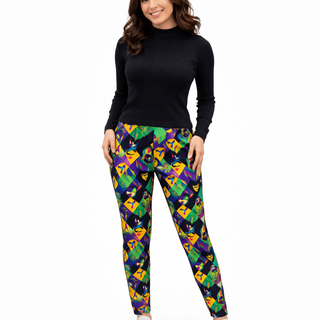 Crafted from a soft, stretchy performance fabric, these Mardi Gras leggings offer a flattering, body-hugging fit that moves with you throughout the day. The high-rise elastic waistband provides comfortable support and a smooth silhouette, making them perfect for parade routes, festivals, parties, or everyday festive wear. Lightweight yet durable, they’re ideal for long celebrations without sacrificing comfort.