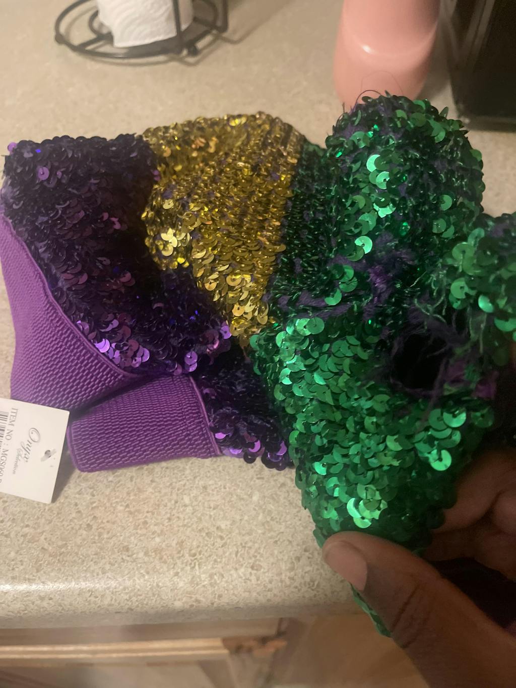 Mardi Gras Sequin High-Waist Shorts – Purple, Gold & Green