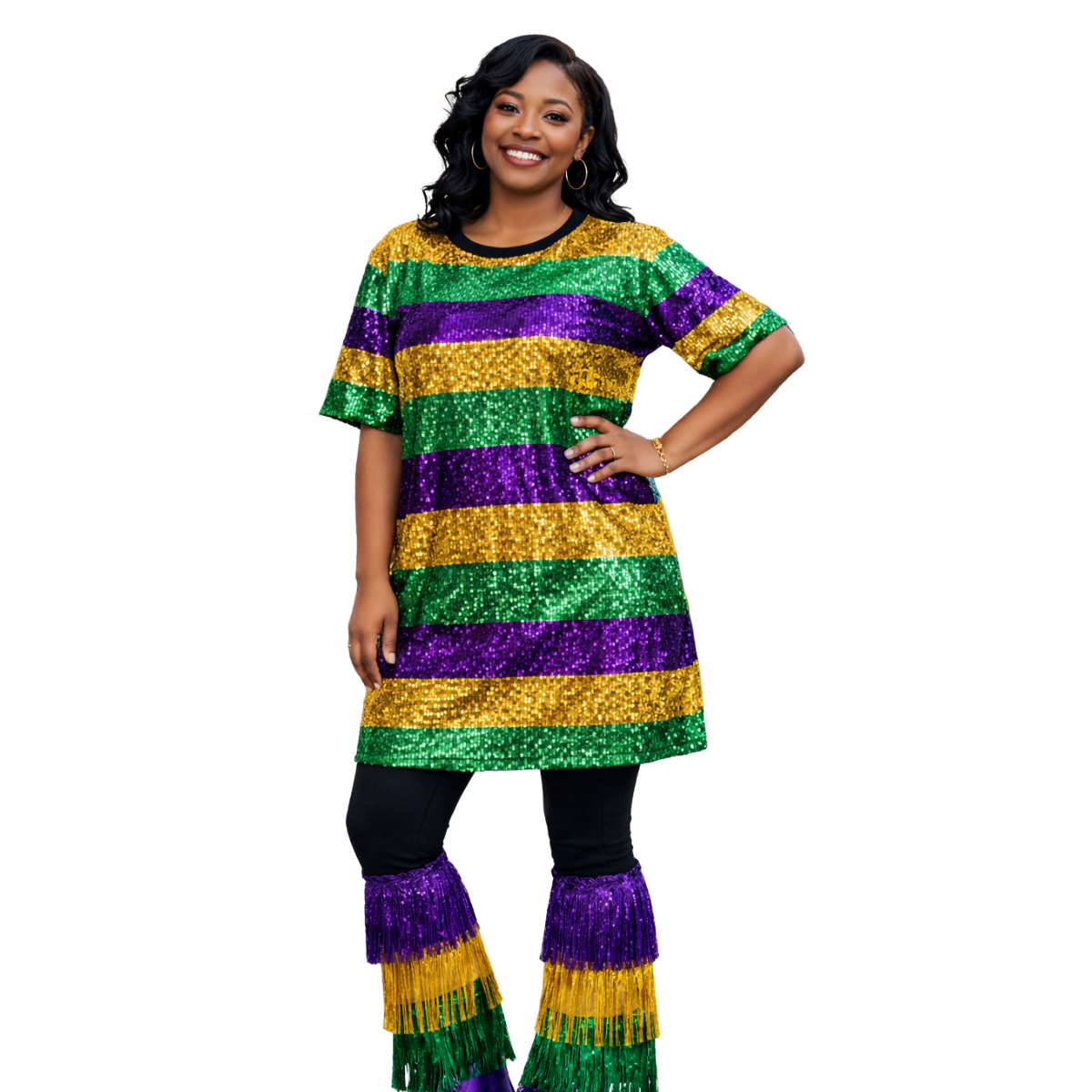 Mardi Gras Striped Sequin Celebration Dress