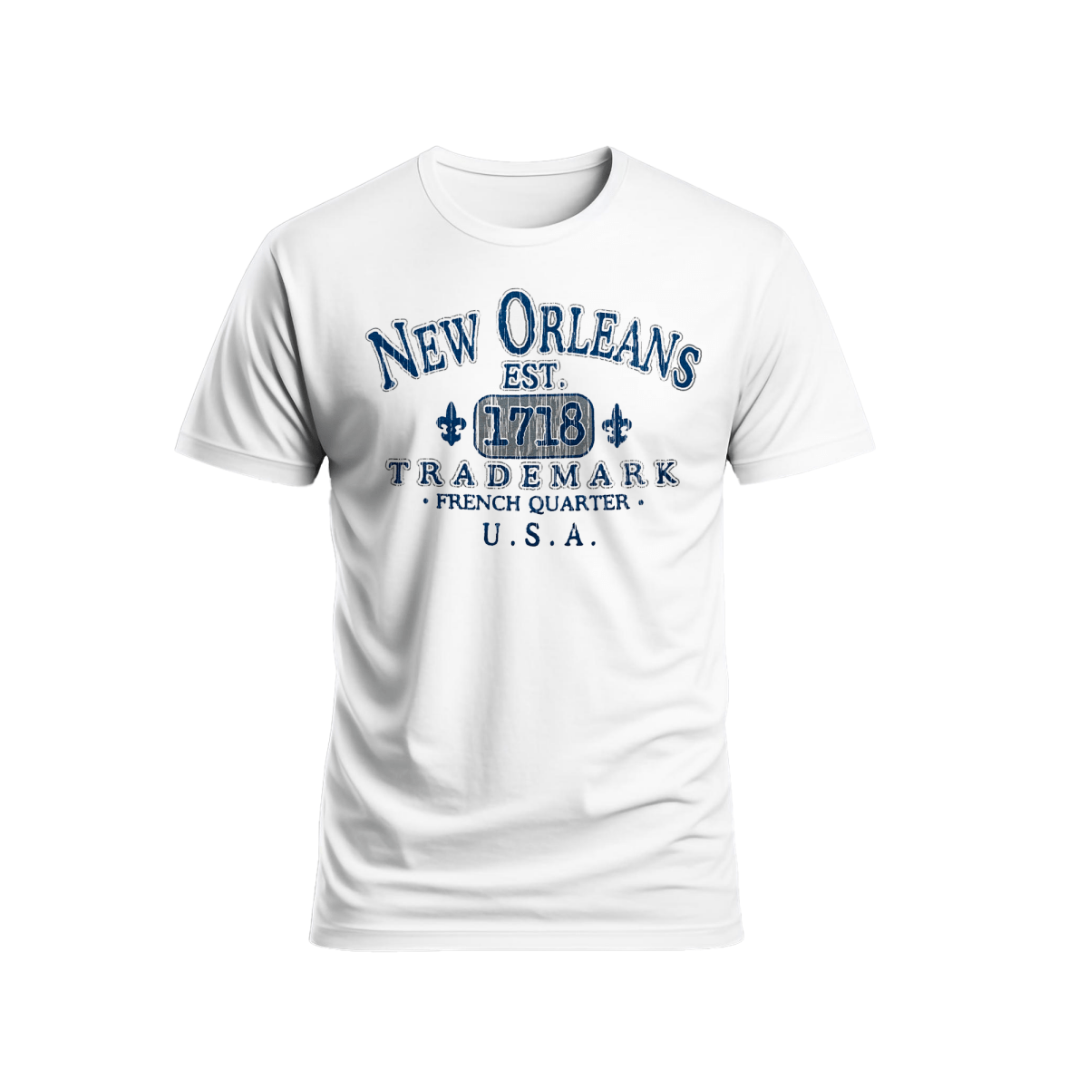Celebrate the history and soul of the Crescent City with our New Orleans 1718 Vintage Trademark T-Shirt. Featuring a bold distressed “New Orleans EST. 1718” graphic, this shirt pays tribute to the year the iconic city was founded. The classic French Quarter style lettering and rustic emblem add an authentic heritage look that locals and visitors love.